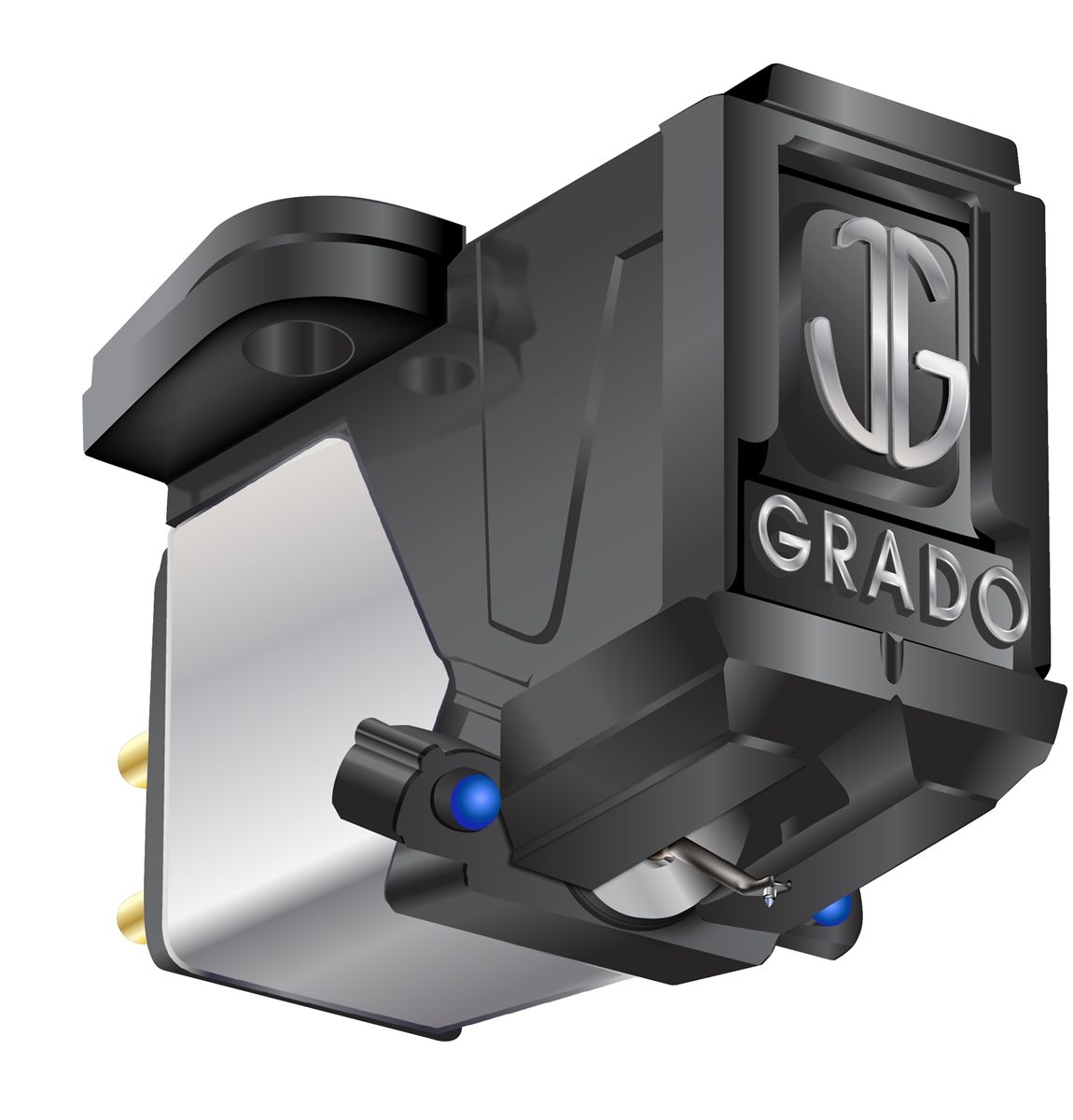 All Grado cartridges use a derivation of the moving iron principle which features patented optimized transmission line cantilever technology, pivoted fixed axial stylus-generator module, and Grado's flux-bridger generator system.