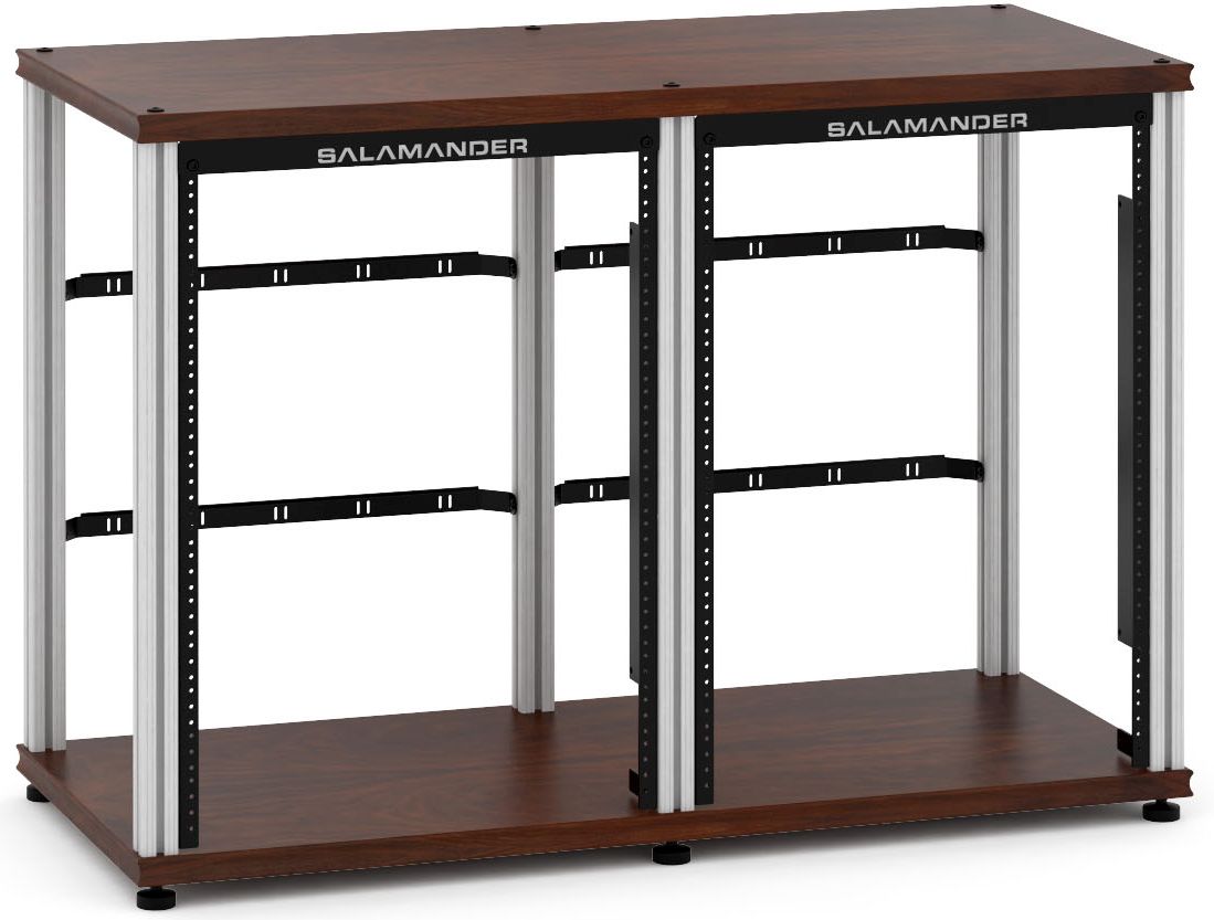 Salamander Designs® Synergy Twin 30 Rack Mount-Dark Walnut/Aluminum with 30U rack mount rails and rear wire lacing barsRead More